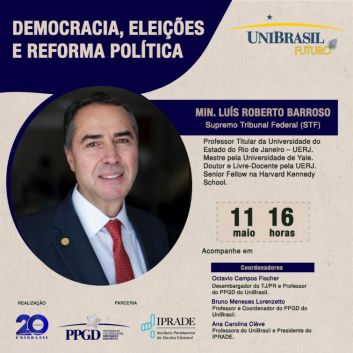 O UniBrasil Centro Universitário promove nesta segunda feira, 11 de maio, às 16 horas, uma Conferência com o Ministro Luís Roberto Barroso do Supremo...